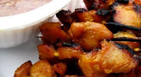 关于”沙爹“名称的由来也很有趣,据说早期福建移民抵达南洋,看到马来人把小肉块串在一起,在火上烤得微焦,香味扑鼻。他们在旁闻味,垂涎三尺。但语言不通,又不知道怎么称呼这种食物,看到串起的三块肉,就索性称它为”三块“(福建话念sartae),久而久之就被人们称为”沙爹“。
